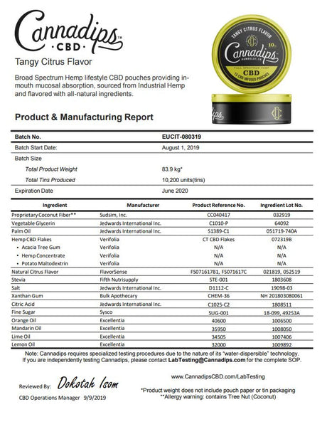Tangy Citrus Cannadips 150mg CBD Snus Pouches